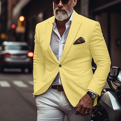 Per uomo Giacca Attività commerciale Cocktail party Ricevimento di matrimonio Di tendenza Informale Primavera Autunno Poliestere Tinta unica Pulsante Tasche Comodo Monopetto Giacca Rosa chiaro