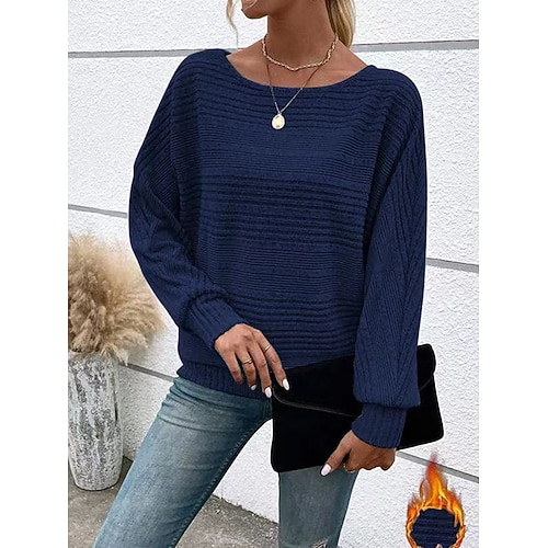 Per donna Abito maglione Elegante Di tendenza Giornaliero Tinta unica Girocollo Lavorato a maglia Manica lunga Top regolari Maglia Feste Nero Cachi Autunno Inverno