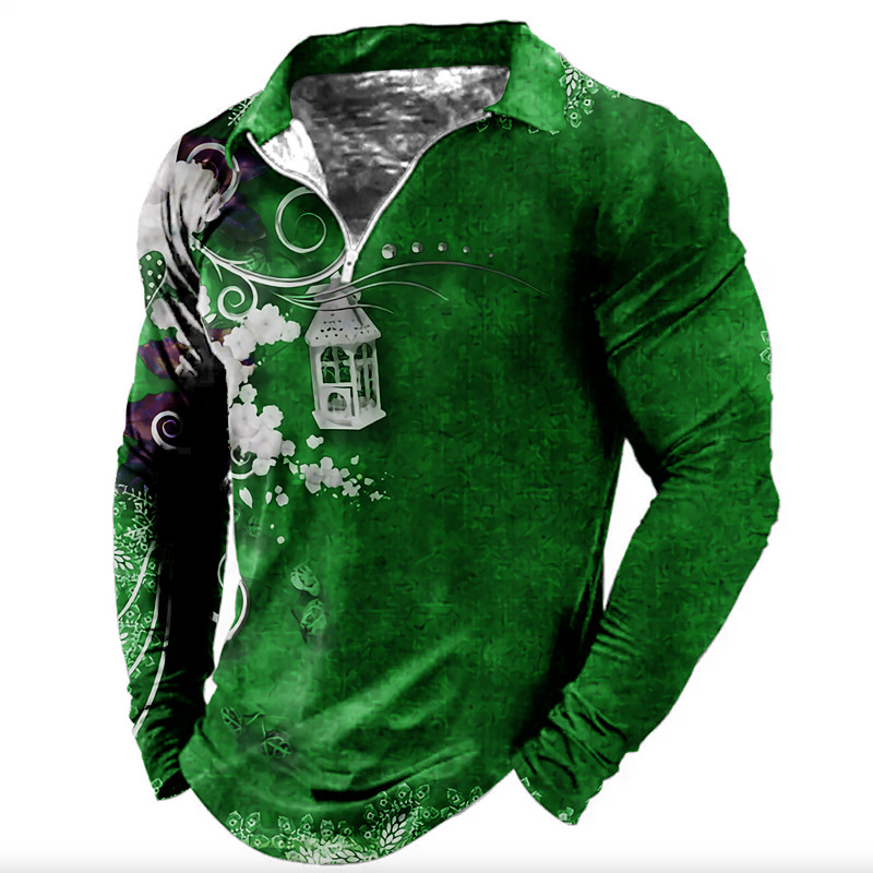 Christmas Men's Christmas Scene 3D Zipper Polo Golf Floral Graphic Prints Turndown Yellow Pink Wine Green Gray 3D Print Street Casual Long Sleeve Zipper Print Clothing Apparel Fashion Designer Casual