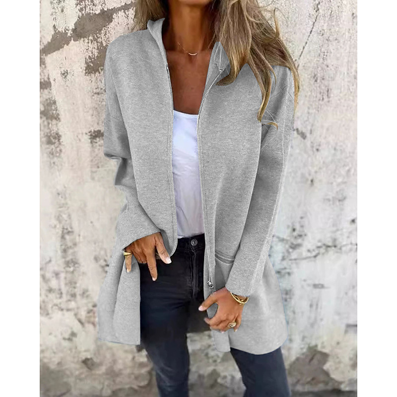 Women's Zip Up Hoodies Plain Casual Long Sleeve Hooded Regular Tops Street Dailywear Casual Zipper Pocket Black Gray Fall Winter