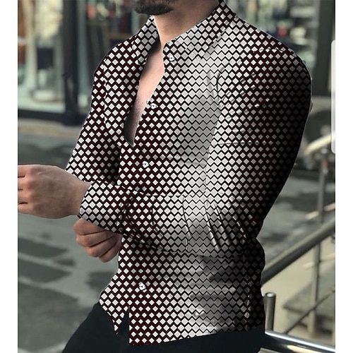 Per uomo Fantasia geometrica Geometrica Camicia Camicia con bottoni Manica lunga Di tendenza Originale Informale Giornaliero Per eventi Per uscire Primavera estate Collo ripiegabile Stampa 3D Bottone