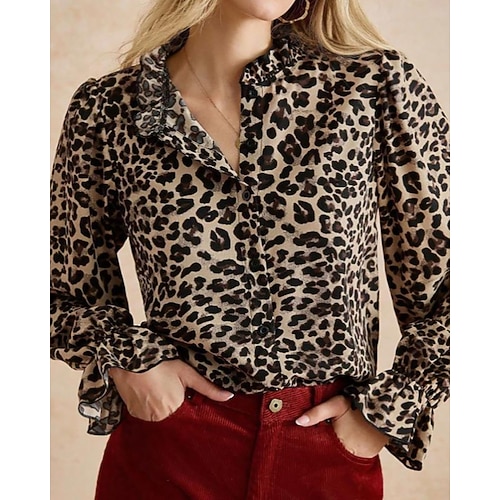 Per donna Camicia Blusa Leopardo Elegante Vintage Casual Manica Lunga Collo Alto Top Regolari Ferie Uscire Bottoni Leopardo Primavera Autunno