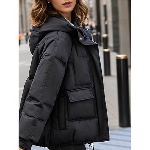 Per donna Parka Confortevole Traspirante Cerniera Tasca Bottoni Casual Semplice Vacanza Streetwear Casuale Abbigliamento quotidiano Cerniera Regolare Con Cappuccio Vestibilità comoda Manica Lunga