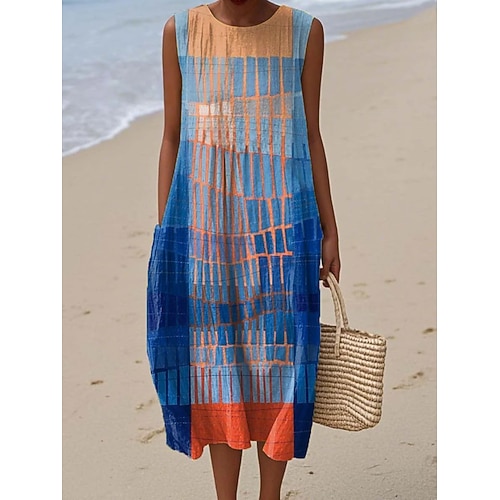 Per donna Abito Midi Vestito Estivo Abito a Tubino Abito a trapezio Vacanza Casual Boho Spiaggia Uscire Vestibilità comoda Grafico Geometrico Astratto Senza Maniche Girocollo Blu Nero Viola chiaro