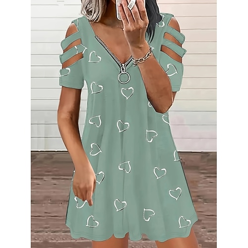 Per donna Mini abito Vestito Casual Abito Stampato Elegante Moda Moderno All'aperto Vacanza Uscire Vestibilità comoda Cuore Manica Corta Scollo a V Blu Bianco Rosa Viola Estate Primavera