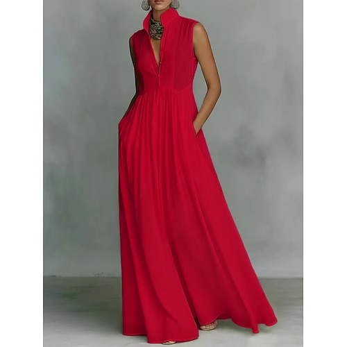 Per donna Abito maxi Abito da Cocktail Vestito in Chiffon Elegante Moda Moderno Vacanza Feste Weekend Vestibilità comoda Semplice Senza Maniche Collo Alto Blu Rosa Rosso Arancione Estate Primavera