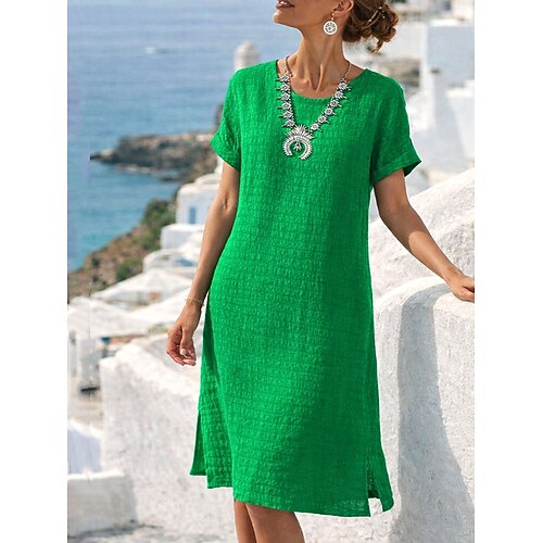 Per donna Abito Midi Finto cotone e lino Vestito a caftano Vestito Casual Abito Largo Moda Moderno Casual Quotidiano All'aperto Spiaggia Vestibilità comoda Semplice Manica Corta Girocollo Blu Nero