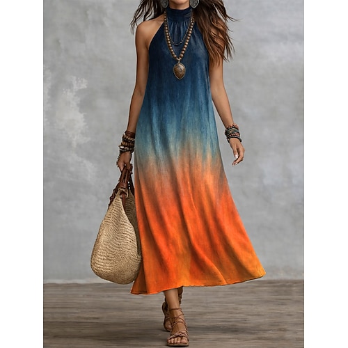 Per donna Abito maxi Vestito Casual Vestito in Chiffon Vestito a ruota Abiti Boho Chic Bohemien Vacanza Tropicale Spiaggia Ferie Data Vestibilità comoda Ombre Grafico Senza Maniche All'americana Blu