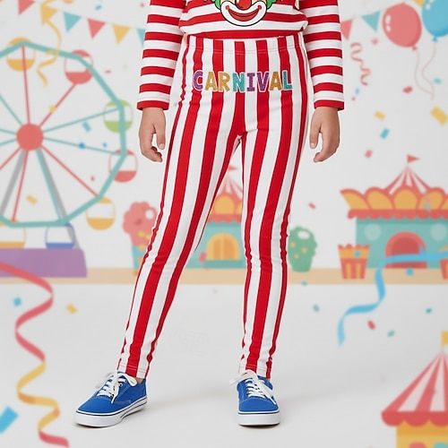 Costume di Carnevale 2026 Ragazze 3D A righe Lettera Pantaloni Leggings Stampa 3D Primavera Autunno Streetwear Essenziale Collant Bambini 4-12 Anni Casuale Quotidiano All'aperto Vestibilità regolare