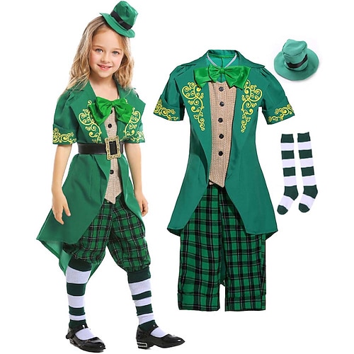 San Patrizio 2026 Leprechaun Irlandese fortunato Carnevale Costume di fantasia Frac Medievale Bambini Ragazze Carnevale Giorno di San Patrizio Feste Costume di Carnevale facile Vestirsi