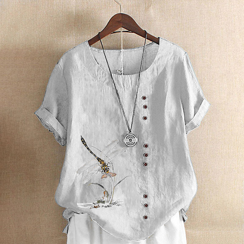 Women's 100% Cotton Shirt Blouse Button Print Weekend Streetwear Basic Casual Linen Like Short Sleeve Crew Neck White Summer Spring