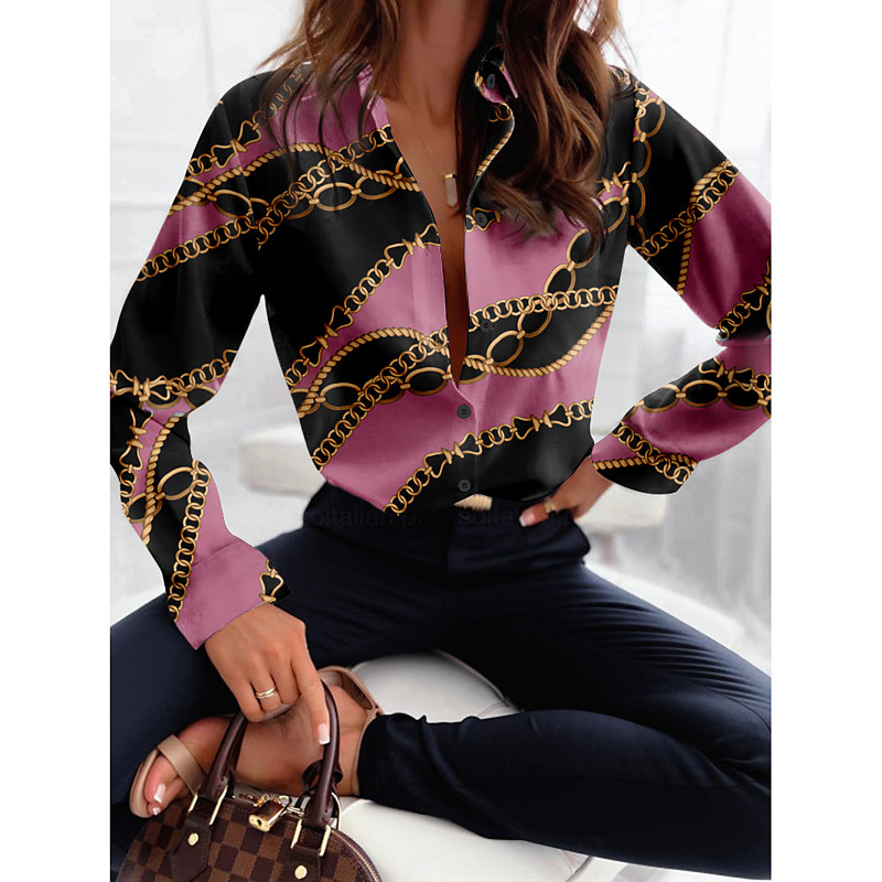 Women's Shirt Long Sleeve Button Down Blouse Fashion Buttons Print Regular Tops Shirt Collar Casual Yellow Pink Blue Green Spring Fall