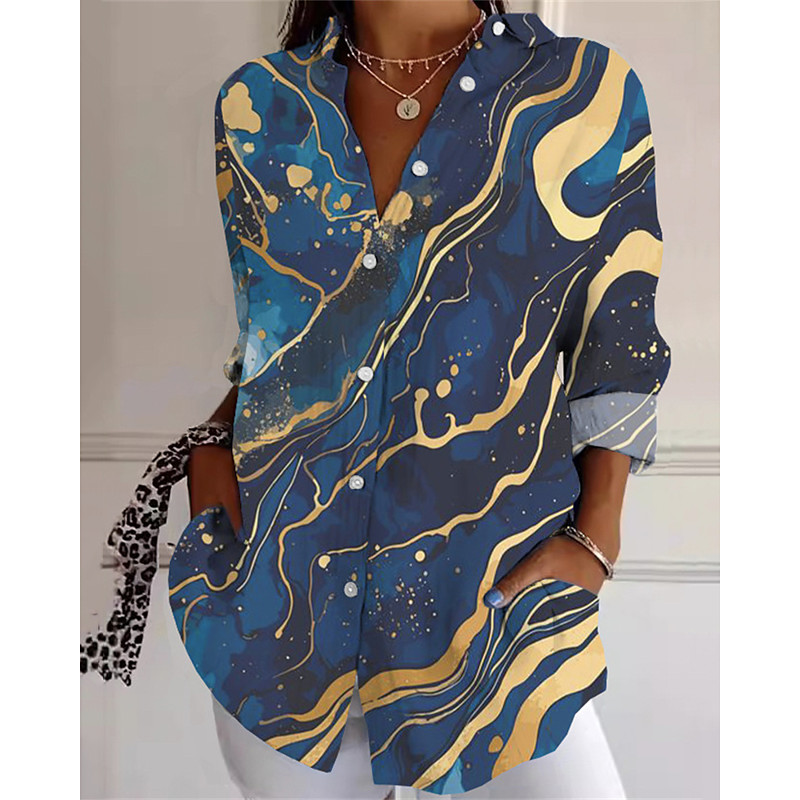 Women's Shirt Abstract Active Daily Stylish Long Sleeve Shirt Collar Regular Tops Daily Holiday Buttons Print Blue Spring Fall