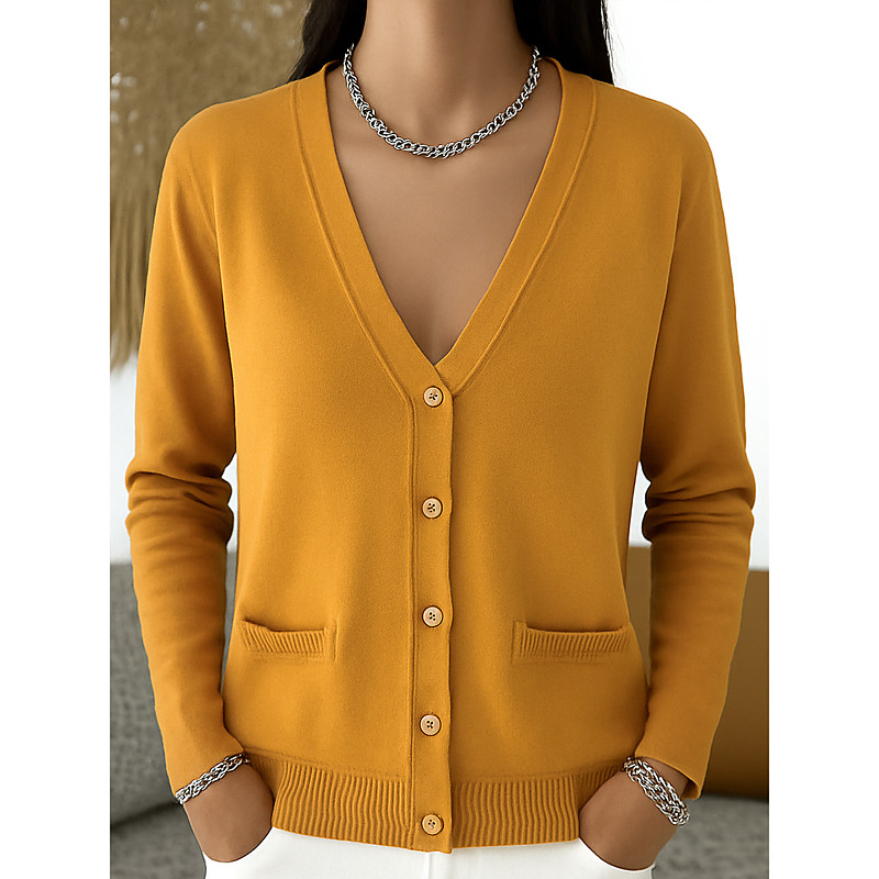 Women's Sweater Cardigan Daily Stylish V Neck Buttons Knitted Long Sleeve Regular Tops Knit Home Sport Daily Black Yellow Spring Fall