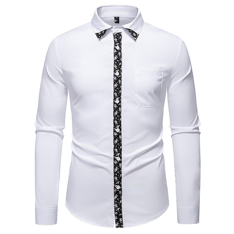 Men's Shirt Dress Shirt Button Up Shirt Floral Wedding Party Black White Long Sleeve Lapel Spring Fall Clothing Apparel Patchwork