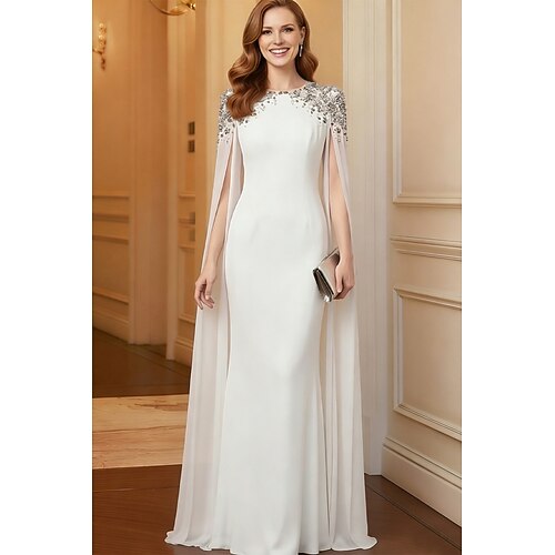 Abito formale a colonna di lunghezza fino al pavimento Abito da sera Abito da sera elegante vintage abito nero a maniche lunghe scollatura rotonda festa serale matrimonio con cristalli e perline