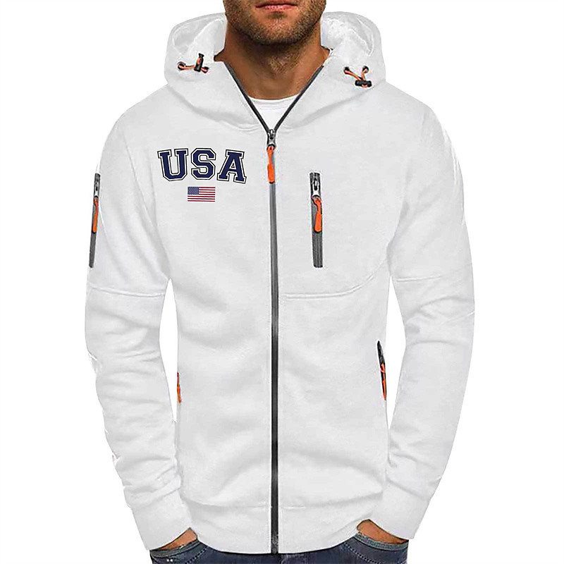 Men's Hoodie Full Zip Hoodie Black White Navy Blue Light Grey Dark Gray Hooded American US Flag Zip Up Pocket Sports Outdoor Daily Holiday Polyester Streetwear Basic Casual Spring Fall Clothing