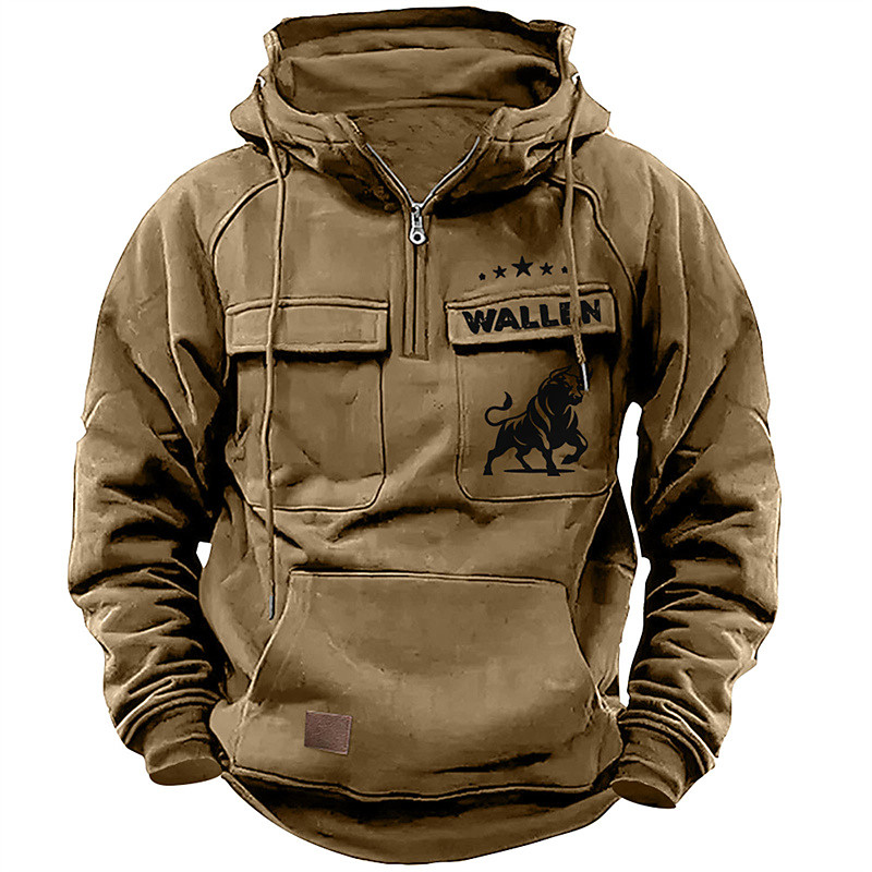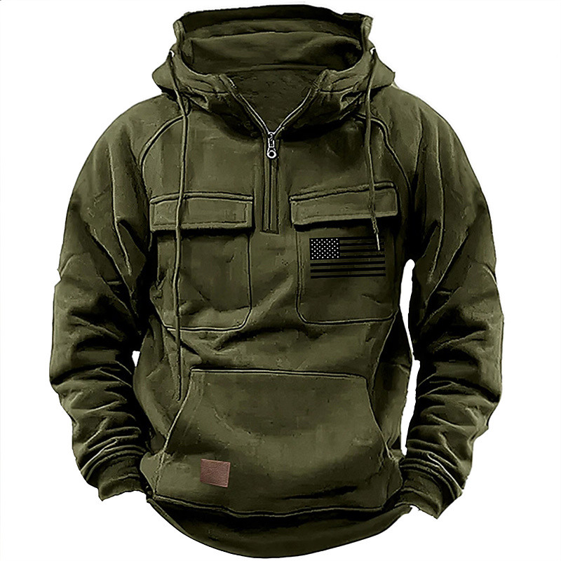 Men's Hoodie Quarter Zip Hoodie Black Pink Wine Blue Green Hooded National Flag Drawstring Pocket Sports Outdoor Daily Holiday Streetwear Basic Casual Spring Fall Clothing Apparel Hoodies