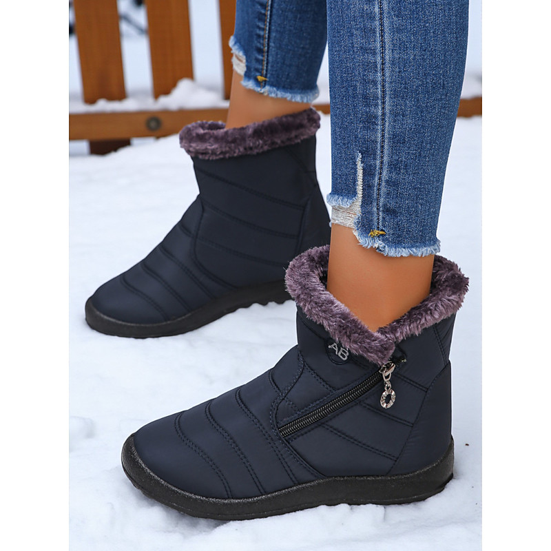 Women's Warm Winter Snow Boots with Faux Fur Lining and Side Zipper, Anti-Slip Waterproof Ankle Boots for Outdoor Wear