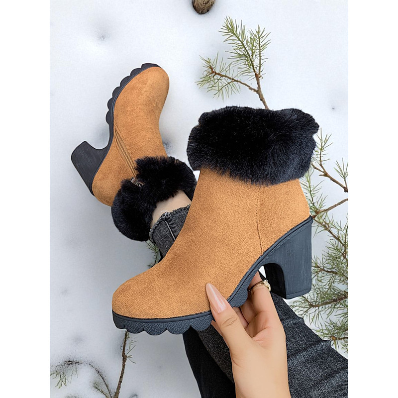Women's Brown Faux Suede Ankle Boots with Block Heel – Elegant Dress Boots for Daily Wear
