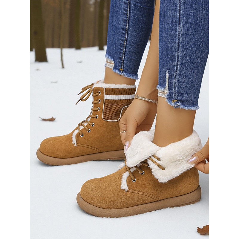 Women's Brown Lace-Up Snow Boots with Fuzzy Lining – Cozy Winter Boots for Cold Weather, Outdoor Adventures and Holiday Travel