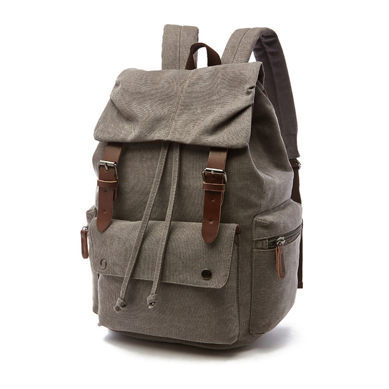 Men's Vintage Canvas Backpack with Leather Straps, Multi-Pocket Travel Rucksack for School, Work, Hiking and Outdoor Use