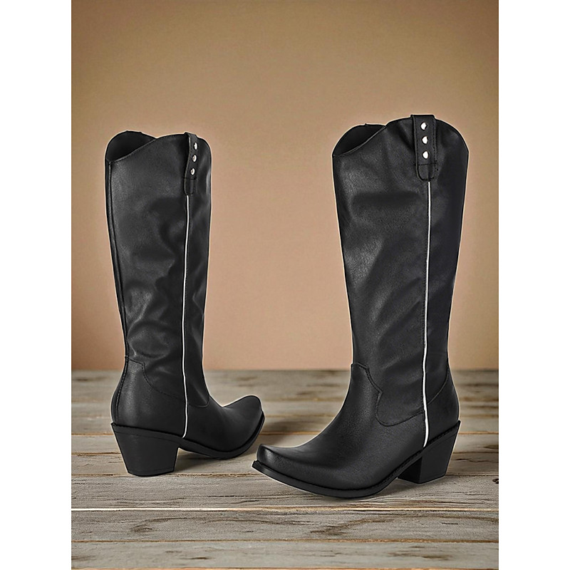 Women's Brown Knee High Cowboy Boots – Classic Western Riding Boots with Low Heel for Country Style and Festivals