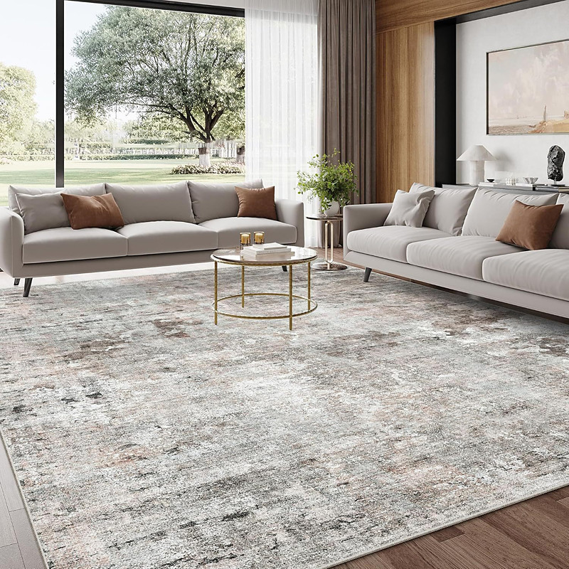 French Vintage Area Rug, Luxury Wash-Free Wipeable Carpet for Living Room or Bedroom, Elegant Large Floor Mat for Sofa and Home Decor