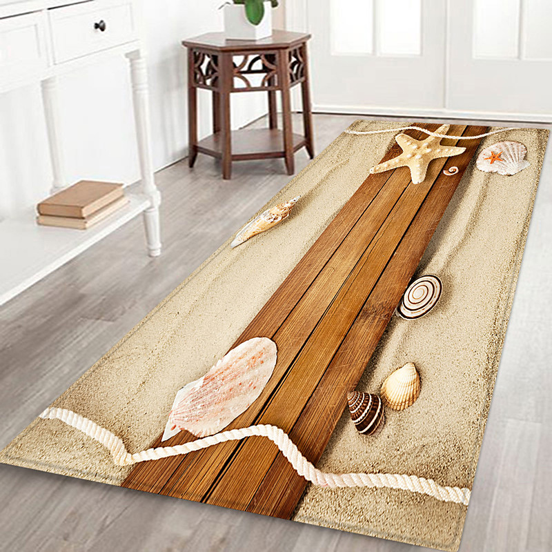 Hallway Runner Rug Beach Starfish Pattern Flannel Fabric Printed Home Decoration Entrance Dustproof Floor Mat Absorbent Soft Bathroom Cushion