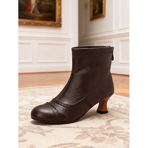 stivaletti brogue in similpelle bordeaux da donna con tacco in legno - design ispirato agli anni '20, da indossare tutti i giorni e per occasioni speciali