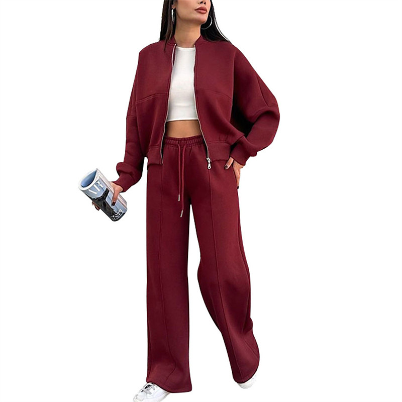 Women's Tracksuit Zip Up Sweatshirt Wide Leg Pants Pocket Solid Colored Clothing Suit Fall Black Burgundy Gym Workout Sports Windproof Long Sleeve Sport Activewear Micro-elastic Regular Fit