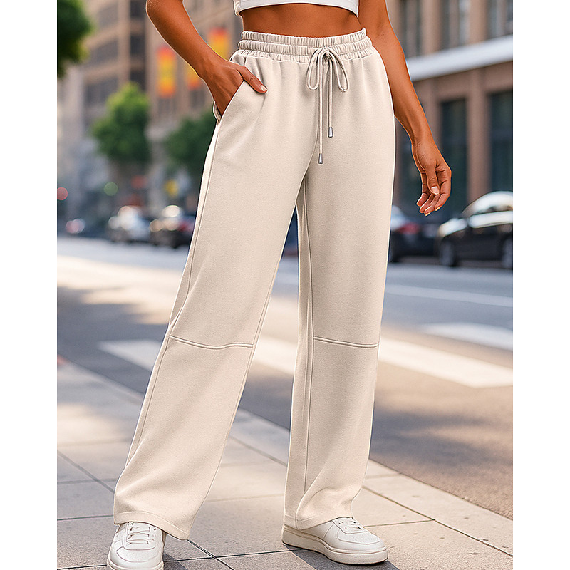 Women's Wide Leg Slacks Streetwear Casual Full Length Natural Plain Pocket Elastic Drawstring Design Comfortable Street Daily Wear Weekend Dark-Gray Apricot Dark Brown Black Fall Regular Fit