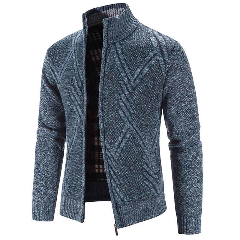 Men's Sweater Vest Cardigan Zip Sweater Sweater Jacket Fleece Sweater Knit Knitted Solid Color Stand Collar Modern Contemporary Casual Outdoor Clothing Apparel Winter Blue Black M L XL