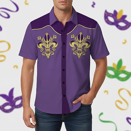 Men's Mardi Gras Carnival Shirt – Festive Party Button-Down