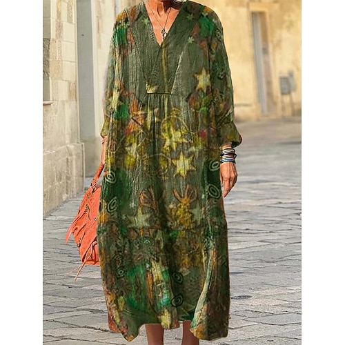 Per donna Abito Midi Vestito Casual Abito Stampato Moda Moderno Quotidiano Spiaggia Weekend Vestibilità regolare Linea Manica 3/4 Girocollo Blu Rosso Viola Verde Primavera Autunno