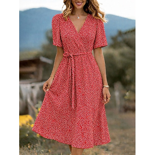 Per donna Abito Midi Vestito Estivo Abito a trapezio Casual Feste Ferie Vestibilità regolare Floreale Grafico Manica Corta Scollo a V Blu Bianco Rosso Verde Estate Primavera
