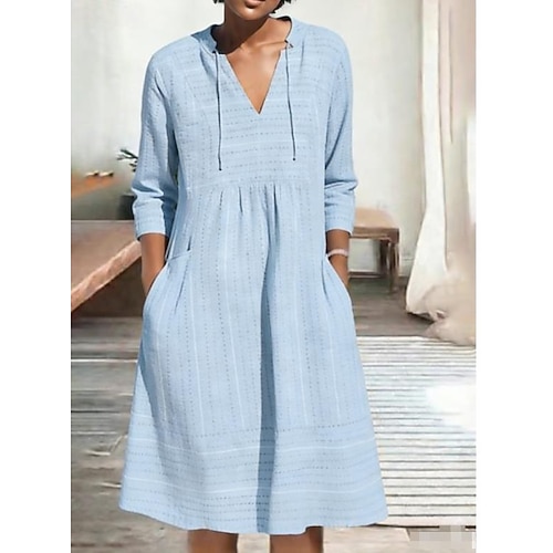 Per donna Mini Abito Abiti ispirati al lino Abito in cotone e lino Classico Quotidiano Ferie Uscire Vestibilità regolare Semplice Manica 3/4 Colletto a Camicia Nero Verde Cachi Grigio Estate