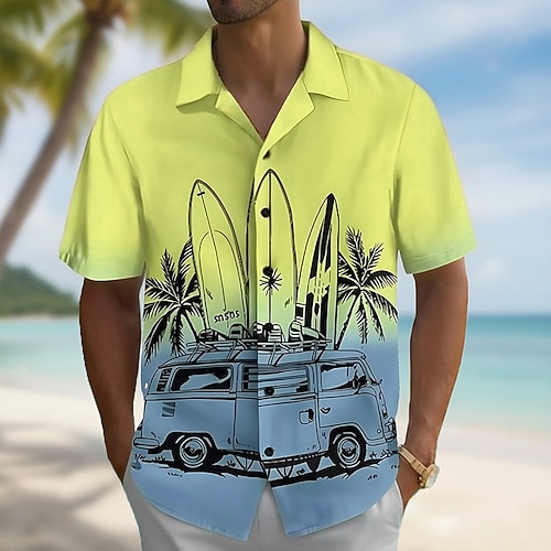 Per uomo Albero di Cocco Piante Tropicali Tavole da surf Camicia hawaiana estiva Camicia con Bottoni Camicia Aloha Manica Corta Hawaiano Vacanza Abbigliamento mare Estate Primavera Collo ripiegato