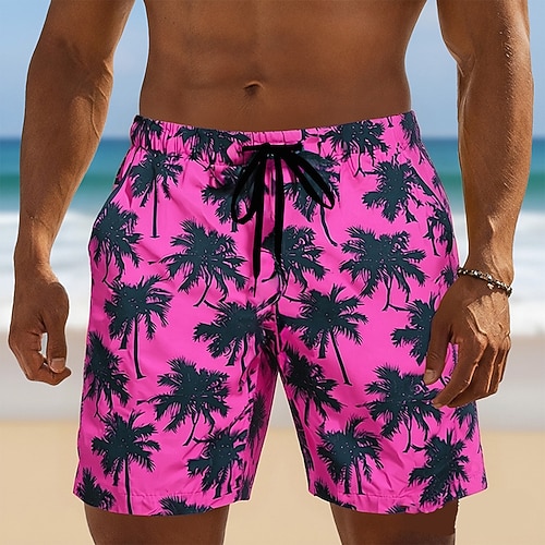 Per uomo Albero di cocco Boxer da surf Pantaloncini da mare Boxer da mare Vita normale Hawaiano Boho Informale Giornaliero Per eventi A cordoncino con fodera in rete Vita elastica progettista