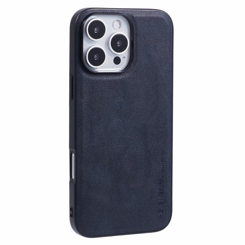 X-LEVEL Bojue-3 Mobilskal till iPhone 16 Pro Läderbelagd Blå