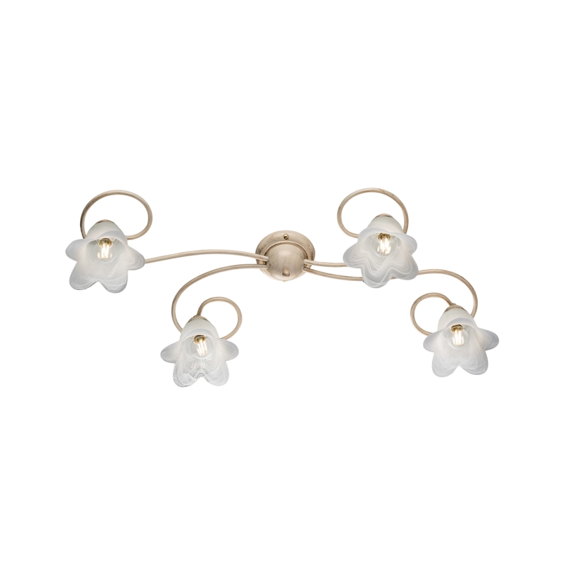 BeLight Alice - Deckenleuchte elfenbeinfarben, Antikgold, Alabasterglas Ø14, 4-flammig, L87x40 - BL230-PL4-AV