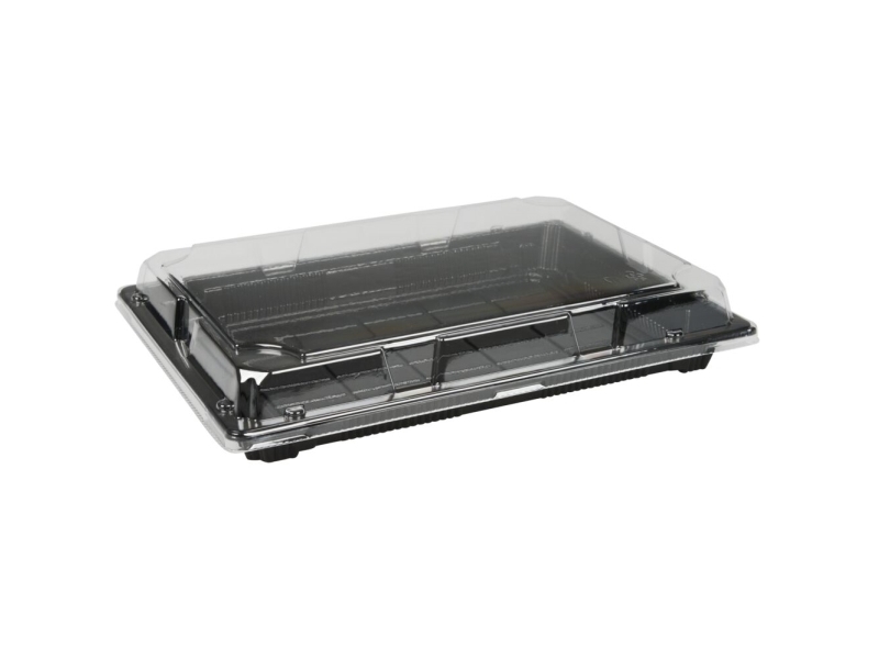 Sushibakke og låg, ABENA Cater-Line, 11, 25,5x18,5x4,6cm, 1160 ml, sort, PET, med gennemsigtigt l...