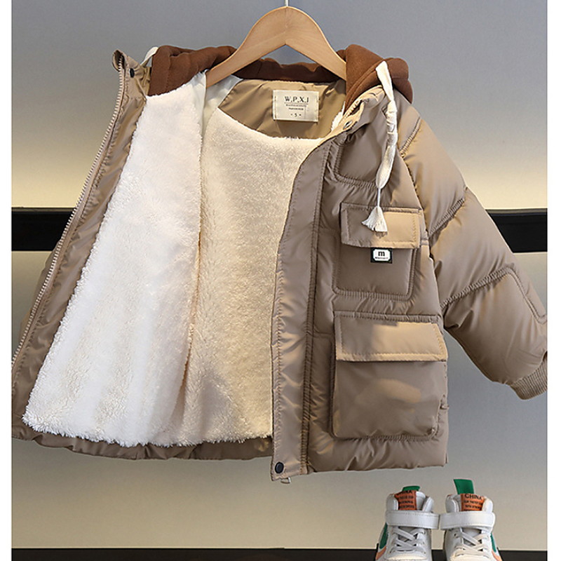 Kids Boys Fleece Jacket Hoodie Jacket Outerwear Kids Puffer Jacket Letter Long Sleeve Zipper Coat Outdoor Cotton Adorable Daily Black khaki Spring Fall 7-13 Years