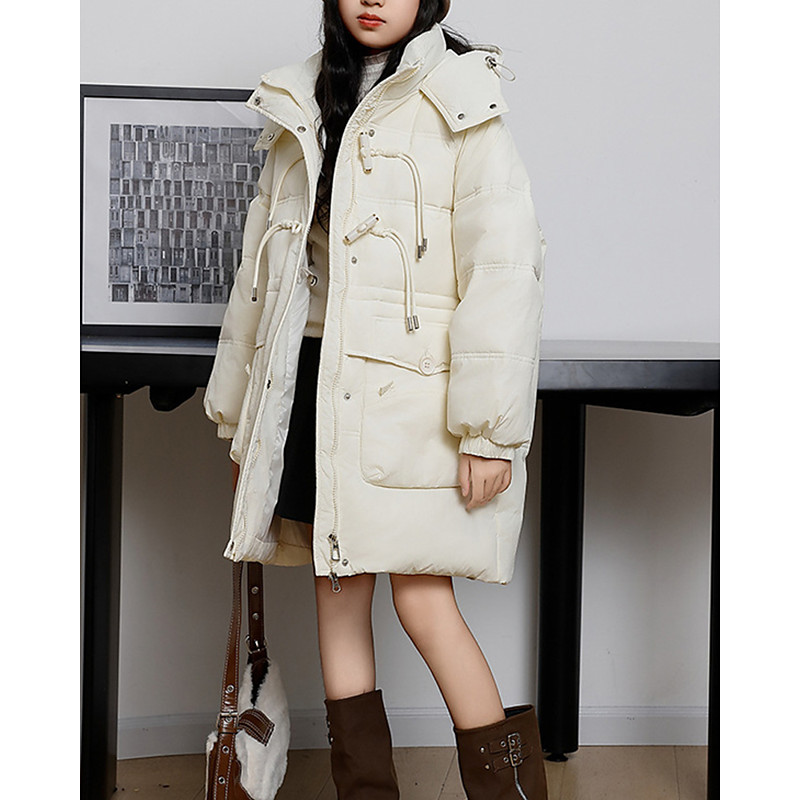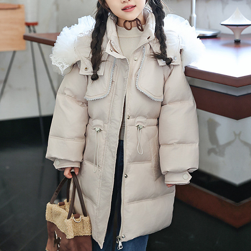 Kids Girls' Down Jacket Puffer Jacket Letter Sports Pocket Keep Warm Windproof Outdoor Coat Outerwear 4-12 Years Winter Black Red Beige