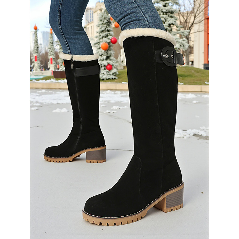 Women's Red Block Heel Winter Boots – Faux Fur Trimmed Santa-Inspired Boots with Ribbon Detail for Christmas Celebrations, Parties and Streetwear