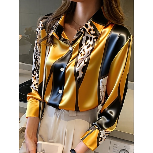 Per donna Camicia da lavoro Grafico Geometrico Elegante Essenziale Casual Manica Lunga Colletto a Camicia Top Regolari Lavoro Abbigliamento da sera Quotidiano Giallo Rosa Cachi Primavera, Autunno