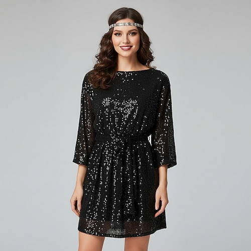 Retrò Vintage Anni Ruggenti Anni 1920 Mini Vestito Abito da cocktail Maniche corte Il grande Gatsby Paillettes Scollo Tondo Costume Per donna Matrimonio Festa / Sera Festa serale Adulti Vestito Abiti