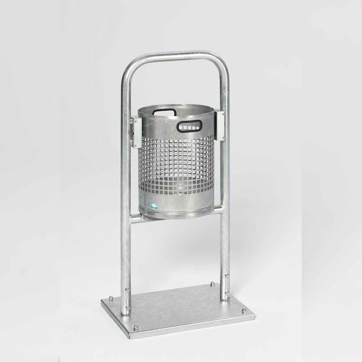 PROREGAL Klassischer gelochter Abfallsammler | Rohrbogen | mit Bodenplatte | HxBxT 115x49x43cm | Stahl | Feuerverzinkt | Mülleimer Abfalleimer