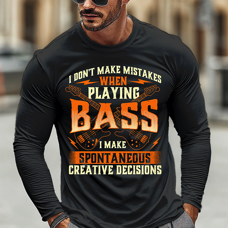 I Don't Make Mistakes When Playing Bass I Make Spontaneous Creative Decisions Long Sleeve T Shirt Funny Bassist Musician Humor Graphic Tee Men Music Player Gift Black Top Clothing Apparel S M L XL XXL