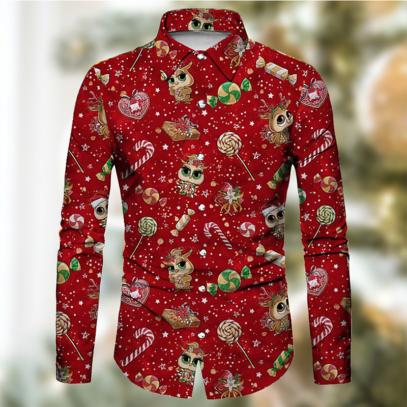 Christmas Men's Christmas Scene Printed Shirts Graphic Shirts Prints Turndown Wine Green Red Beige 3D Street Long Sleeve Button Clothing Apparel Cotton Button-Down